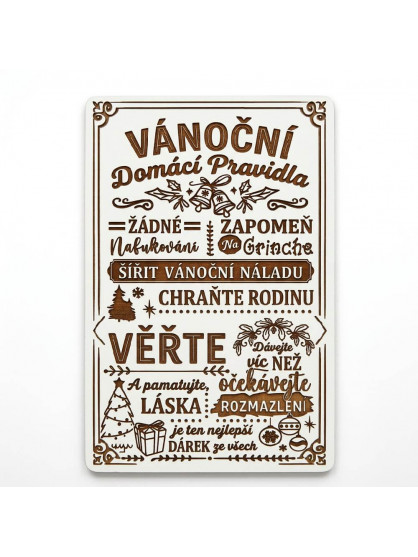 Dřevěná dekorační cedulka: Vánoční pravidla